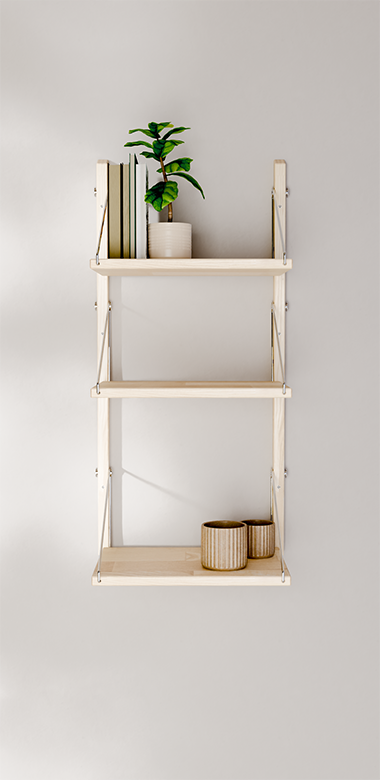 Półka ścienna STAKK łączy w sobie skandynawski design i przemyślaną modułowość w ponadczasowym systemie półek. Wyprodukowana w Europie i całkowicie bez użycia tworzyw sztucznych, jest synonimem jakości, trwałości i świadomego stylu życia.